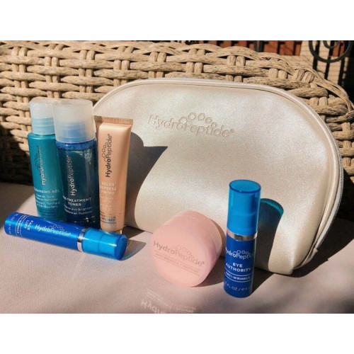 Найбільш очікуваний новий набір мініатюр-бестселерів, з колекцій космецевтичного бренду HydroPeptide – Day&Night Care. Зручна, містка перламутрова косметичка + 6 незамінних супутників для очищення, сяйва, гладкості, омолодження і захисту від шкідливого сонячного випромінювання. Цей сет буде приємним подарунком для кожної красуні, яка цінує свою молодість і здоров’я шкіри. а також для ознайомлення з професійною космецевтикою HydroPeptide. Всі засоби з набору підходять для будь-якого типу шкіри, пептиди нового покоління працюють тільки там, де це потрібно підлаштовуючись під індивідуальні потреби, незалежно від віку і стану шкіри. Day&Night Care зібрав все необхідне, що потрібно знати про догляд за обличчям. Всі ці продукти можна застосовувати починаючи з 20 років. Склад набору: